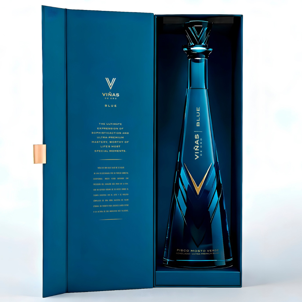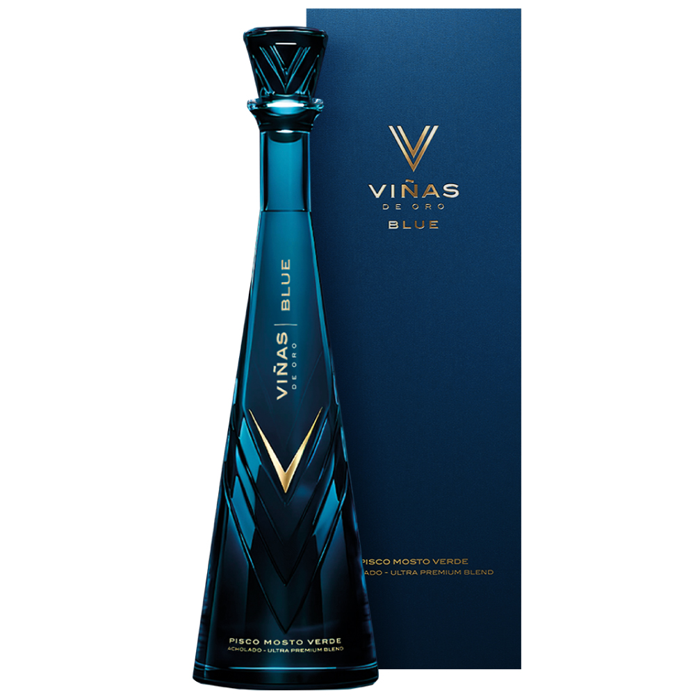 Pisco Viñas de Oro Blue mosto verde acholado 710ml. Perú